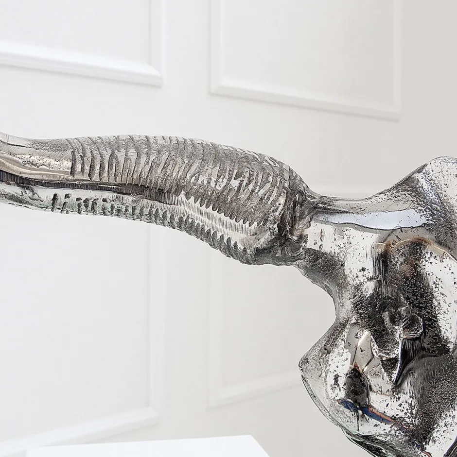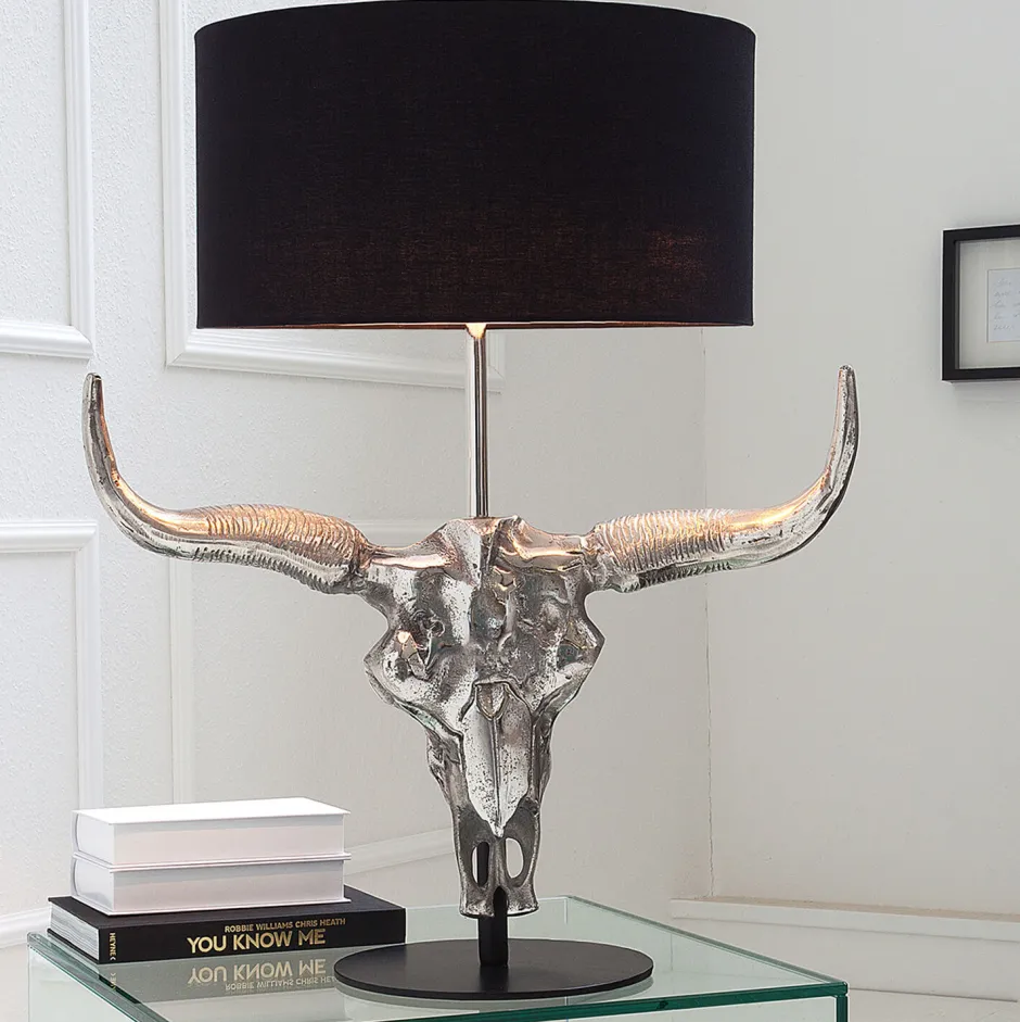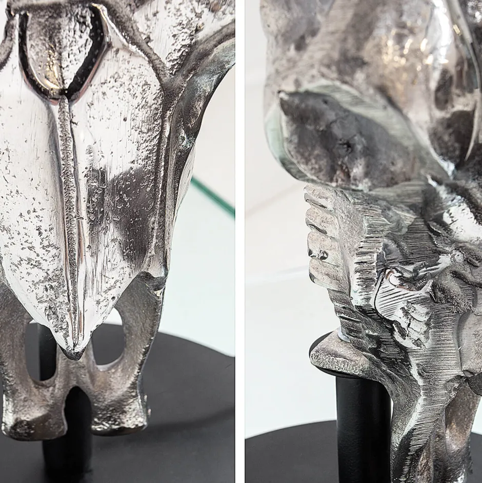 Der Fuß in Form eines Stierschädels wurde mit einer glänzenden Aluminium-Legierung überzogen