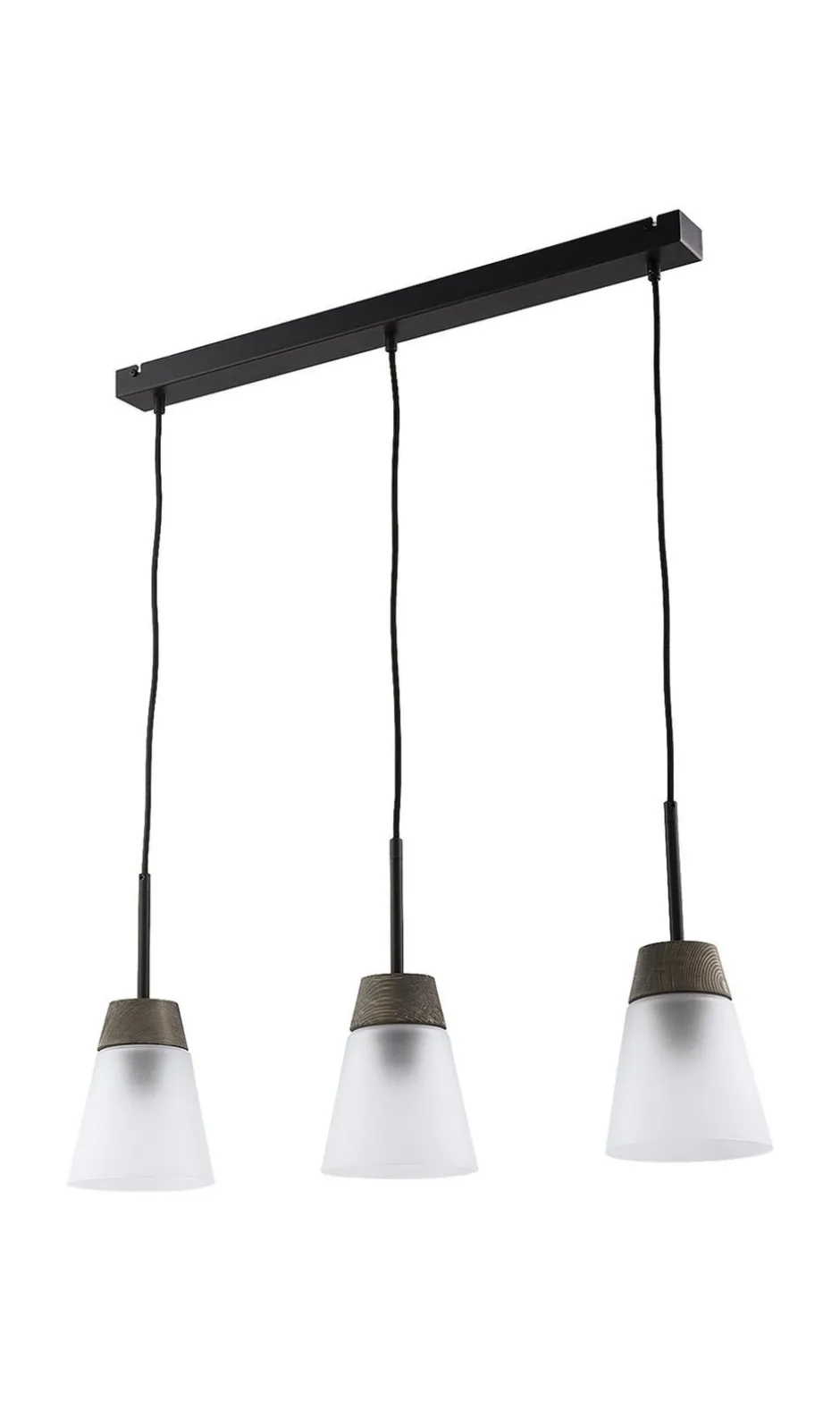 Ein Akzent aus Holz verleiht der Hängeleuchte einen wohnlichen Charakter