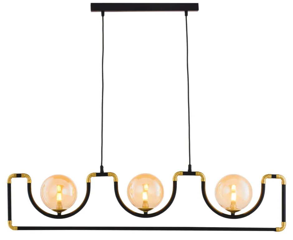 Moderne Pendelleuchte aus Metall und Glas in Schwarz, Bernstein und Gold