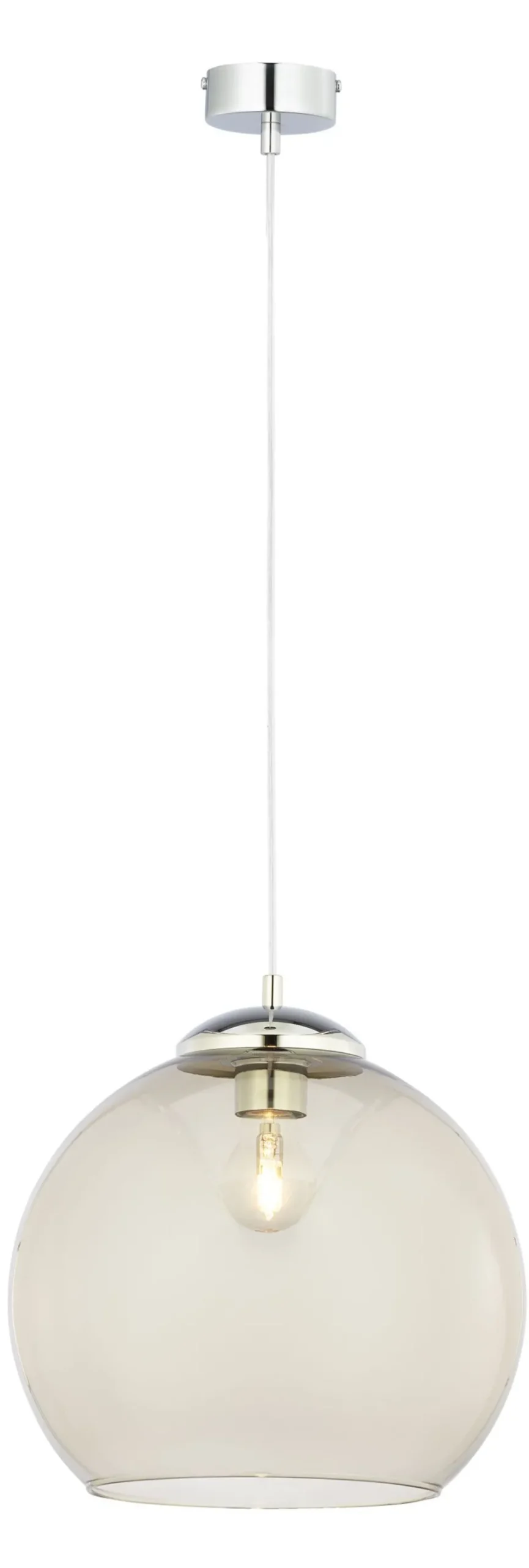 Retro Pendelleuchte aus Metall und Glas in Chrom und Rauchgrau