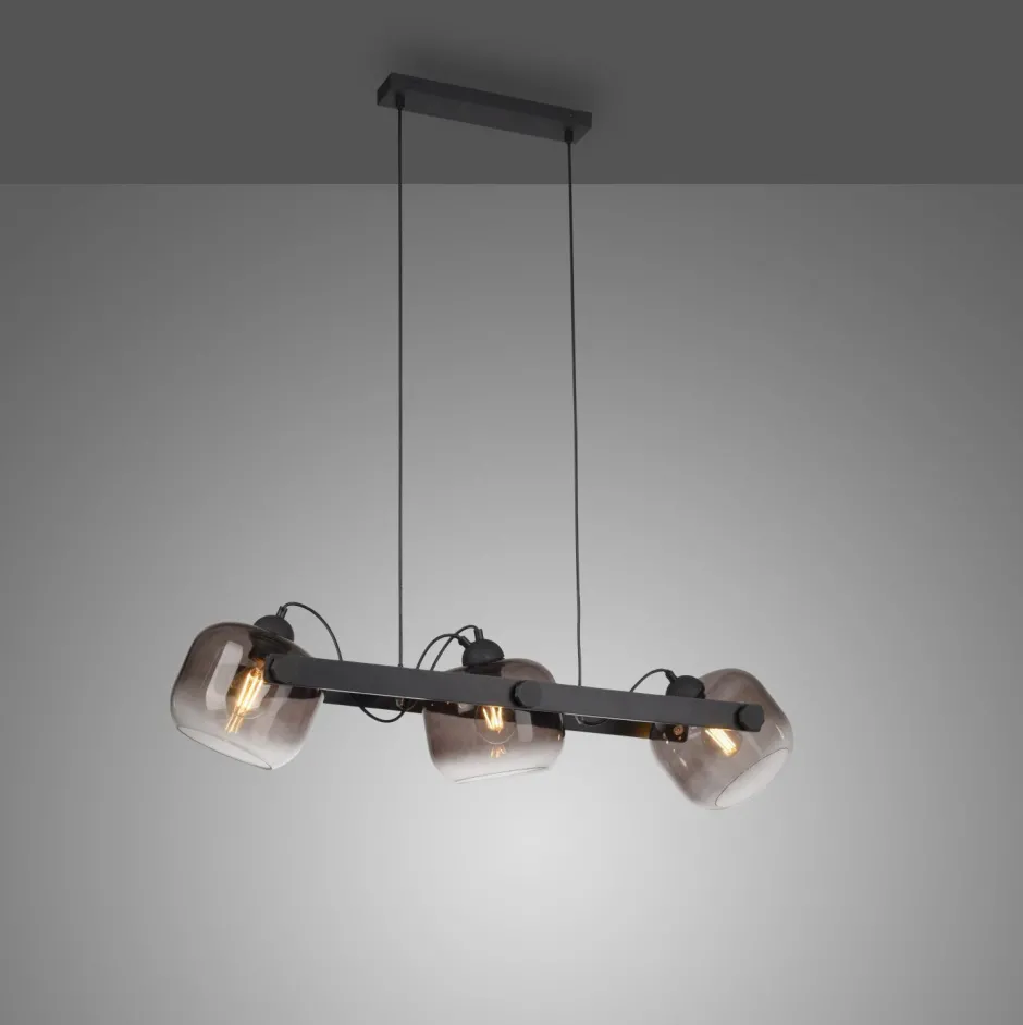 Industrial Pendelleuchte aus Holz und Rauchglas