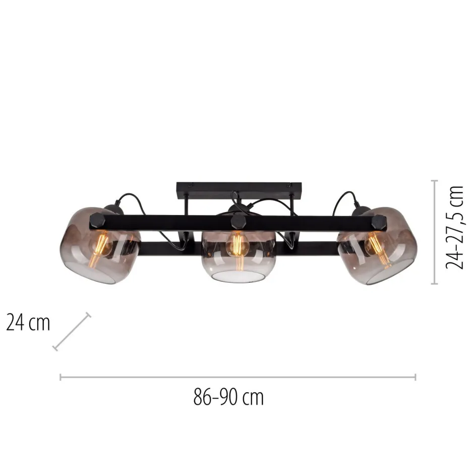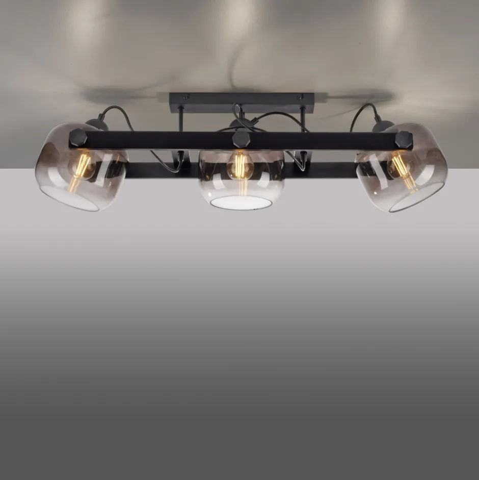 Industrial Deckenstrahler aus Holz und Rauchglas