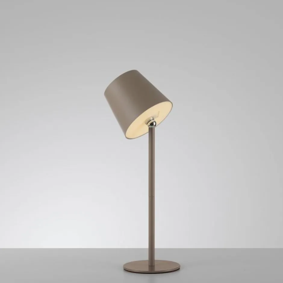 Moderne LED Akku Tischleuchte aus Metall in Sandfarben