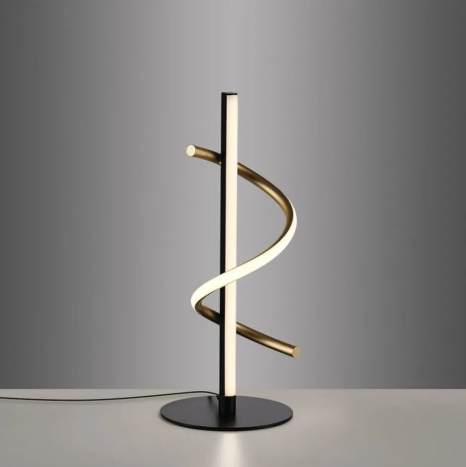 Moderne LED Tischlampe aus Metall in Schwarz und Messing