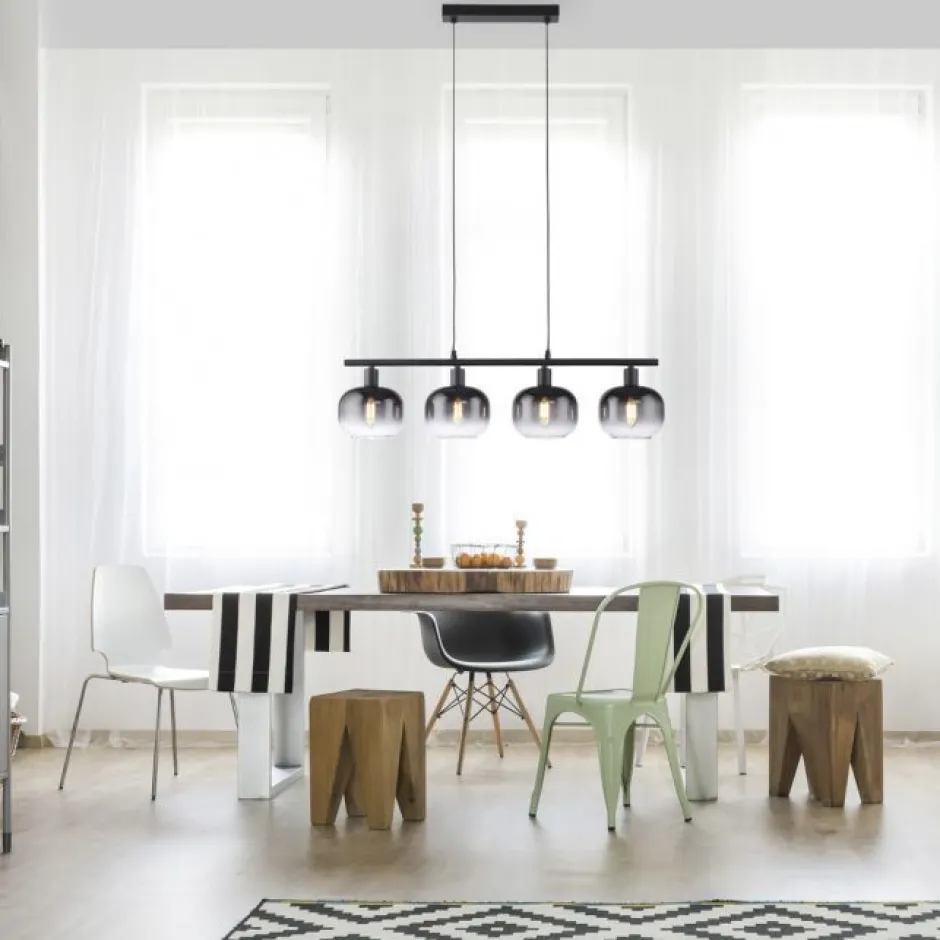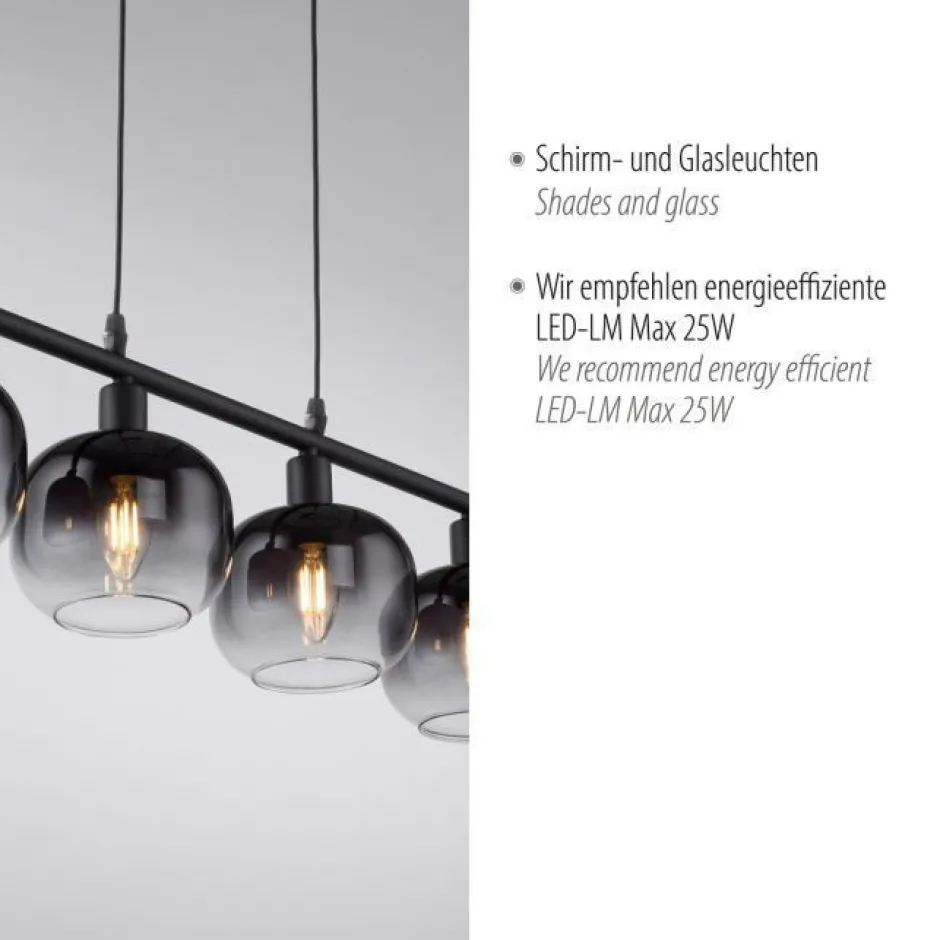 Moderne Hängelampe aus Metall und Glas in Schwarz