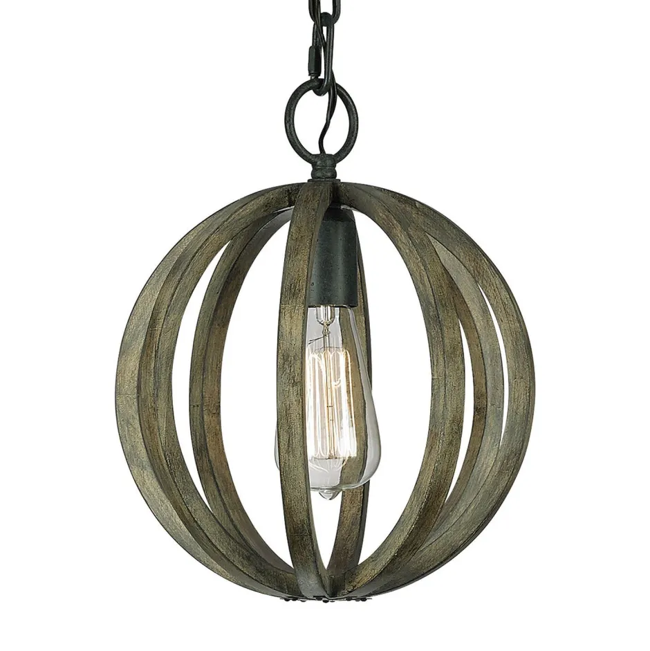 Der runde Schirm aus Eiche verleiht dank seiner verwitterten Optik jedem Raum ein rustikales Ambiente