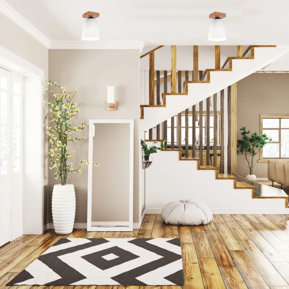 Wohnliche Deckenlampe aus Holz und Stoff für Flur, Esszimmer und Wohnzimmer