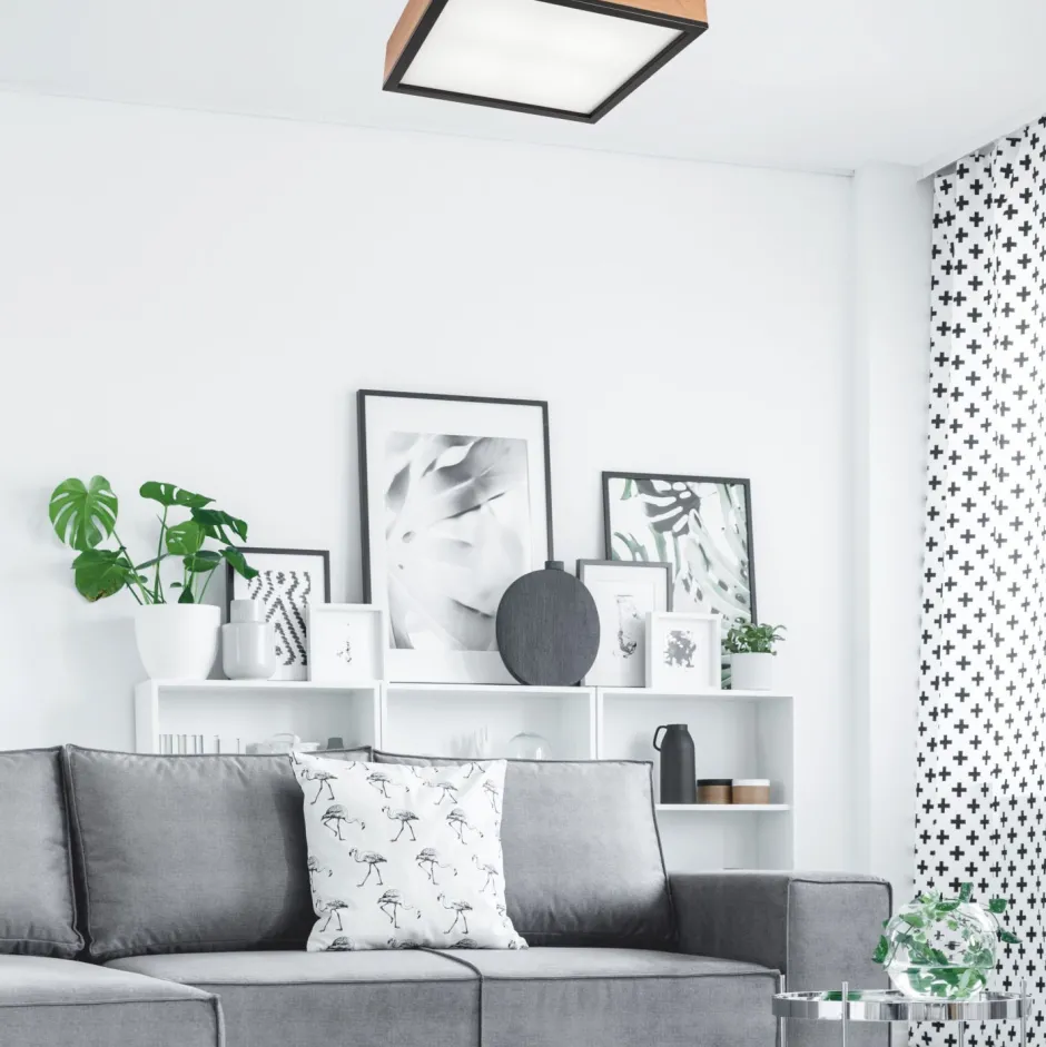 Dank ihrer geringen Höhe passt die Deckenlampe auch in Räume mit niedrigen Decken