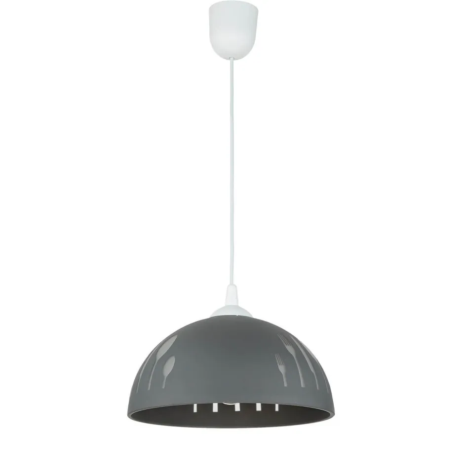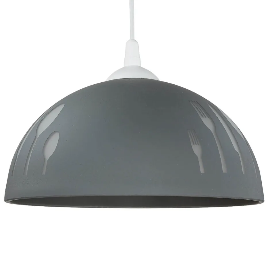 Ein witziges Besteck-Motiv ziert den Schirm und verleiht der Pendelleuchte ein dekoratives Flair