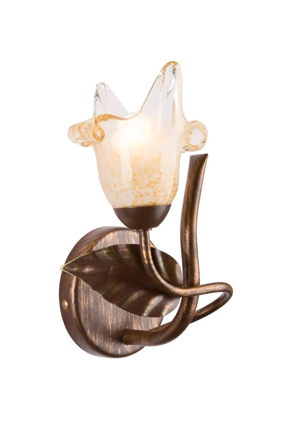 Florale Wandlampe mit aufwendigen Verzierungen und einem Glas Schirm in Blütenform