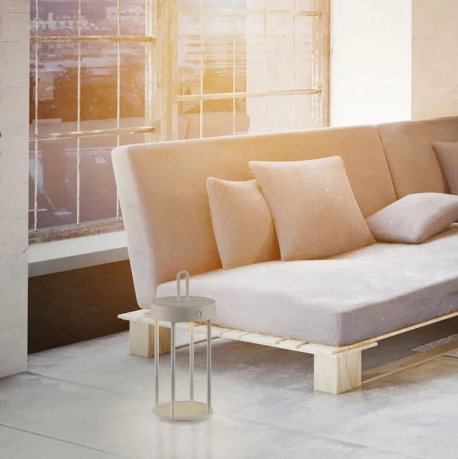 Moderne LED Akku Tischlampe in Greige