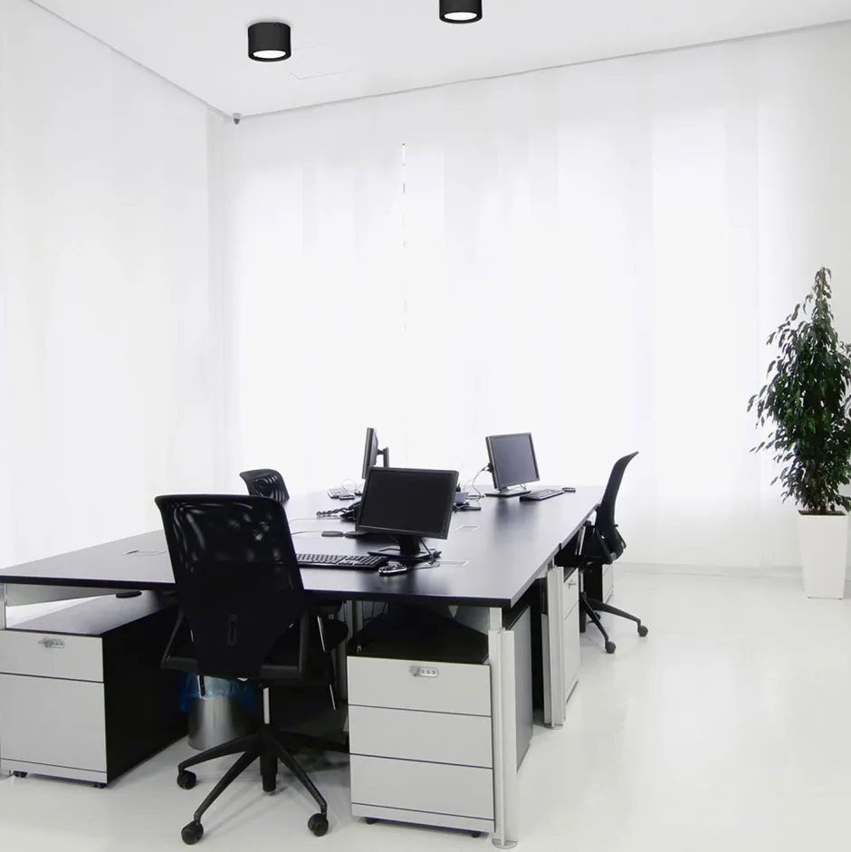 Zeitloser LED Aufbauspot aus lackiertem Stahl in Schwarz