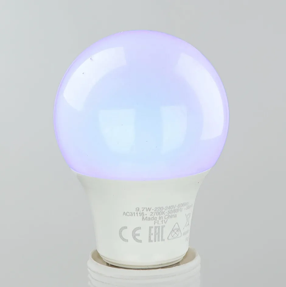 Standard-Lichtfarbe: 2700 K warmweiß, Standard-Helligkeit: 806 lm (vergleichbar mit einer 60 Watt Glühbirne)