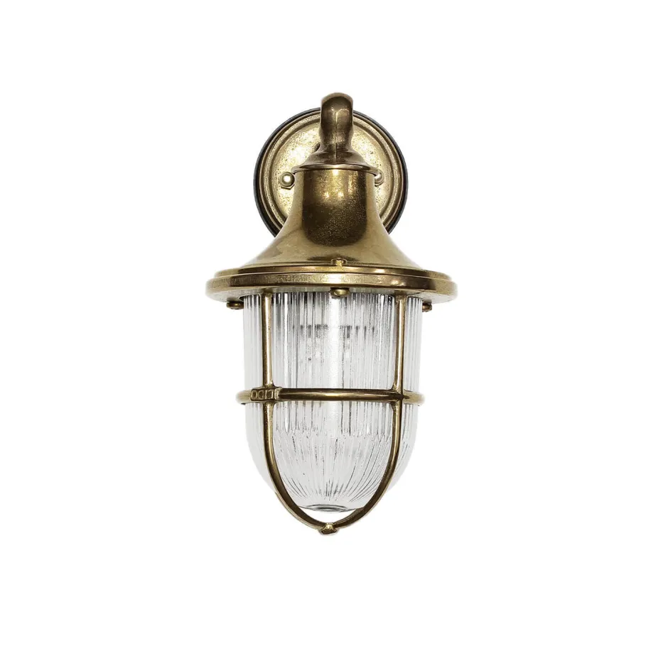 Rustikale Außenwandleuchte aus massivem Messing und Glas