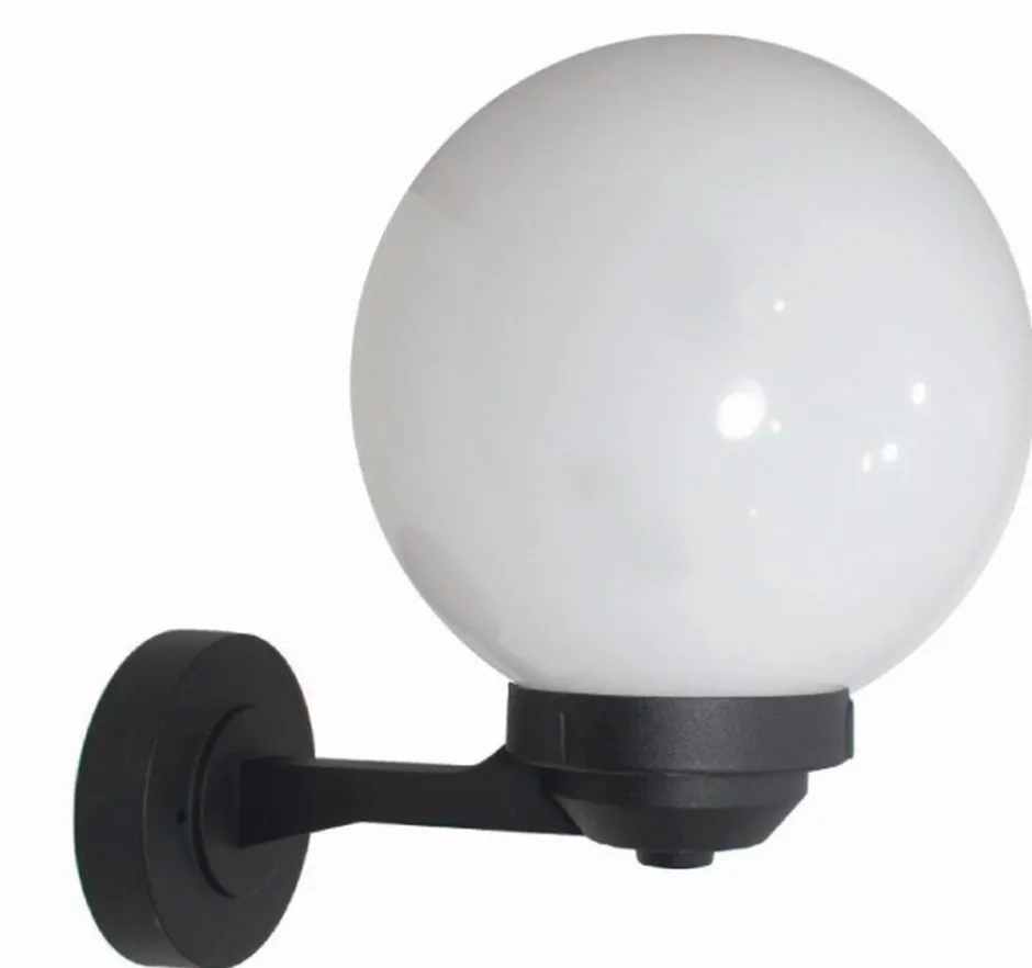 Elegante Wandlampe für Außen mit Kugelschirm in zeitlosem Schwarz Weiß