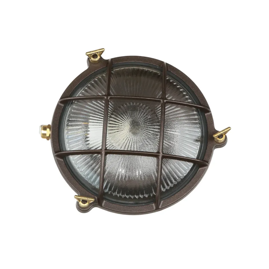 Maritime Außenwandlampe aus massivem Messing im Stil eines antiken Bullauges