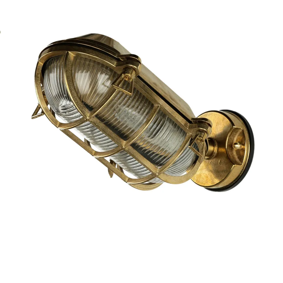 Maritime Außenwandlampe aus massivem Messing im Stil eines antiken Bullauges
