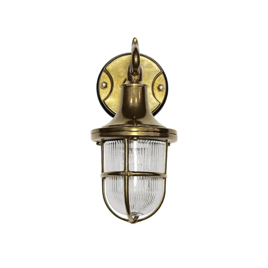 Rustikale Außenwandleuchte aus massivem Messing und Glas