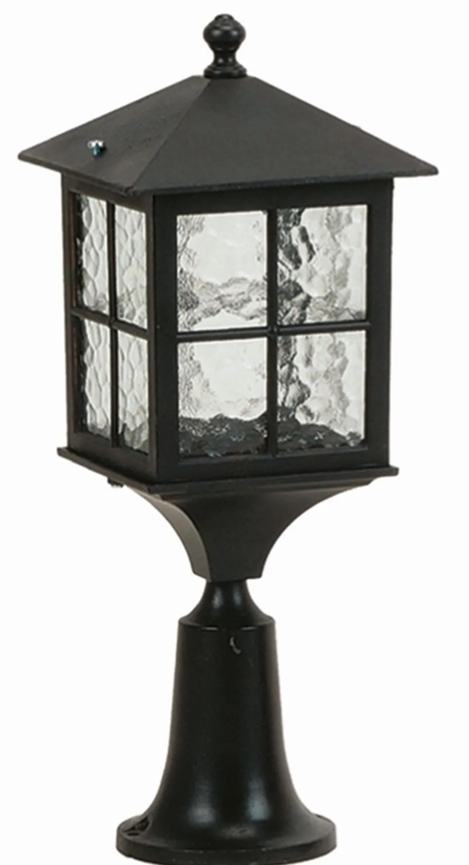 Rustikale Sockelleuchte aus witterungsbeständigem Aluminium in Schwarz
