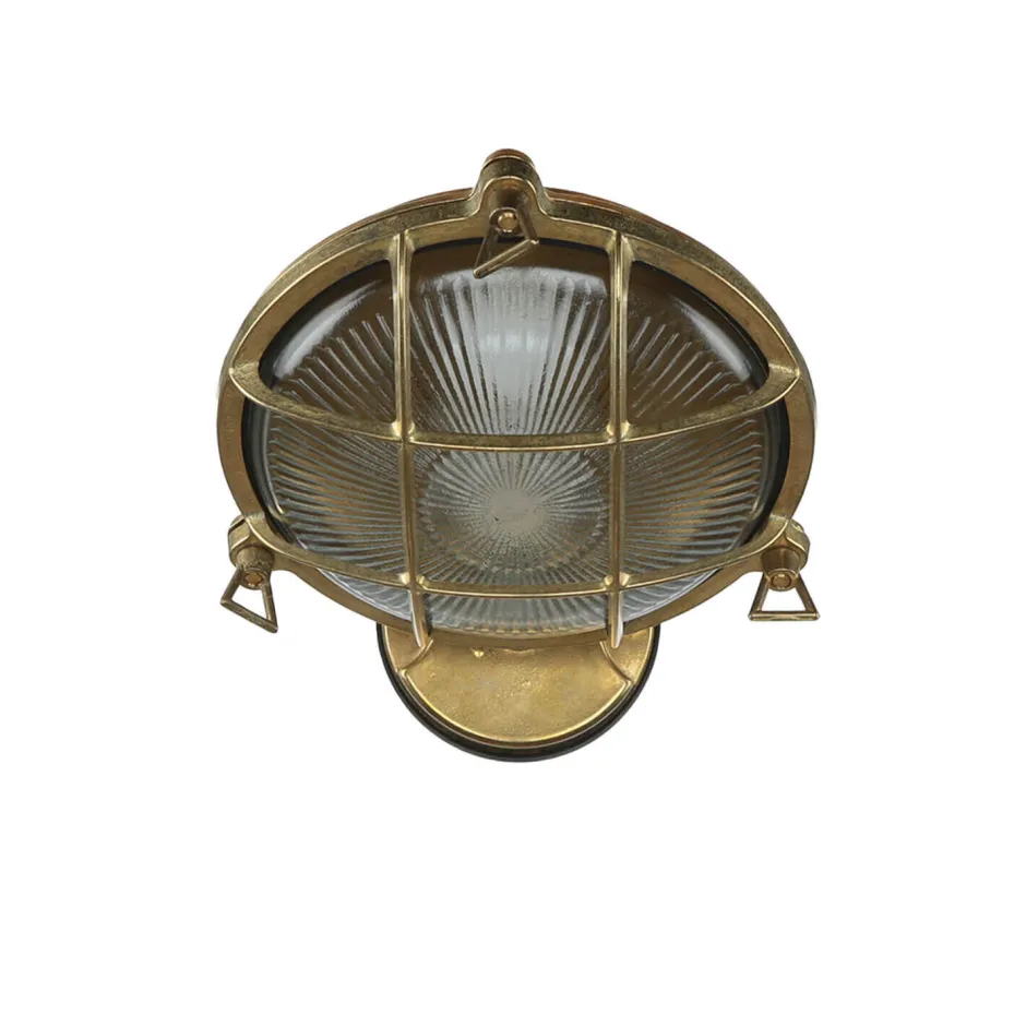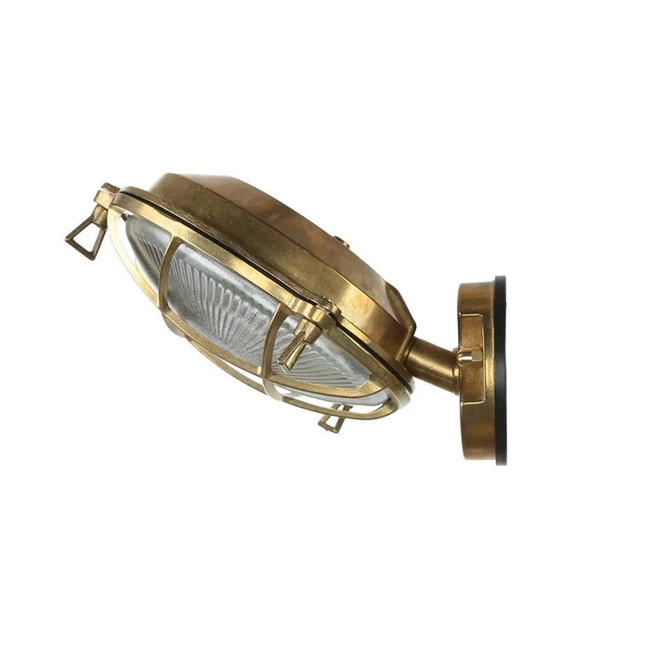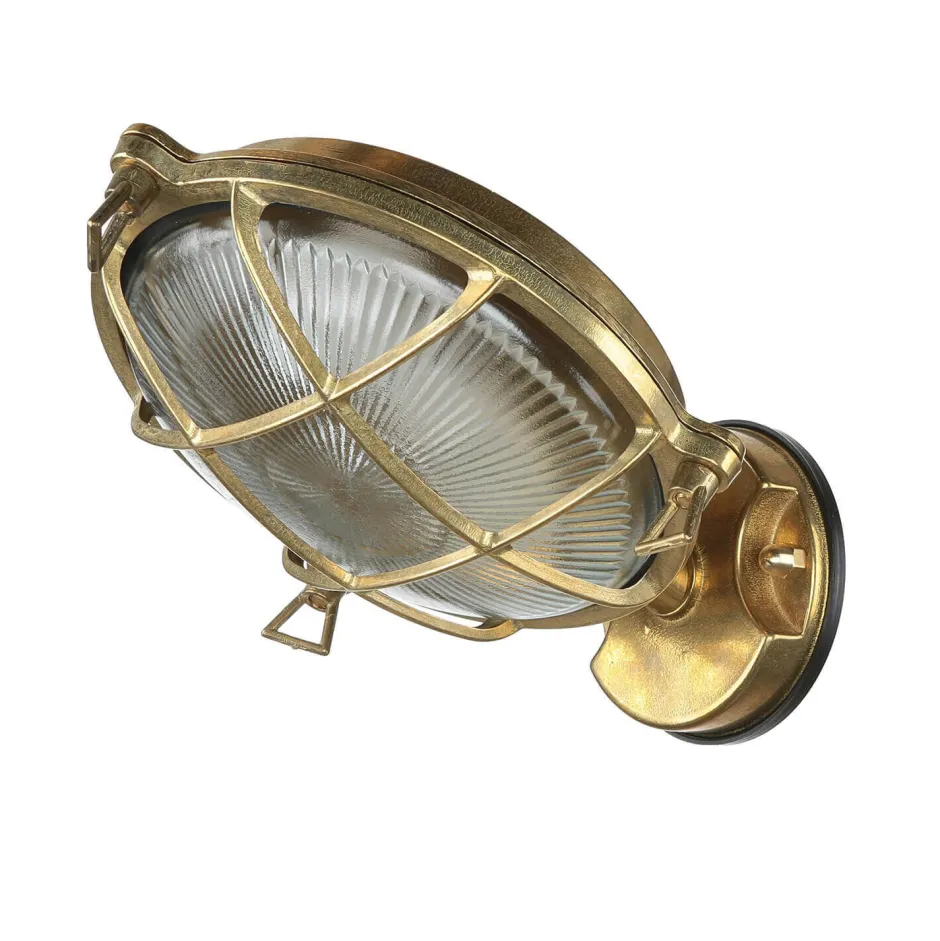 Maritime Außenwandlampe aus massivem Messing im Stil eines antiken Bullauges
