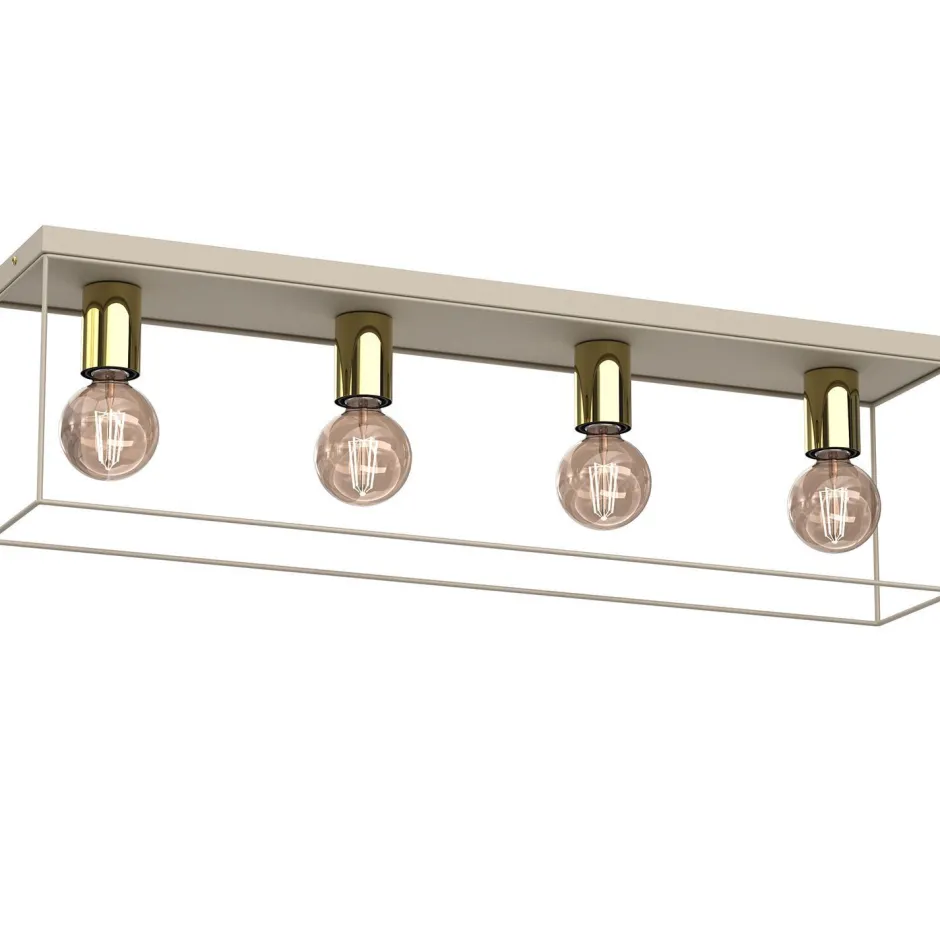 Industrie Deckenlampe aus lackiertem Stahl in Beige und glänzendem Gold