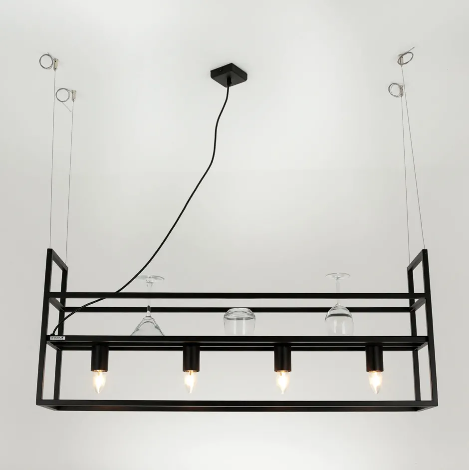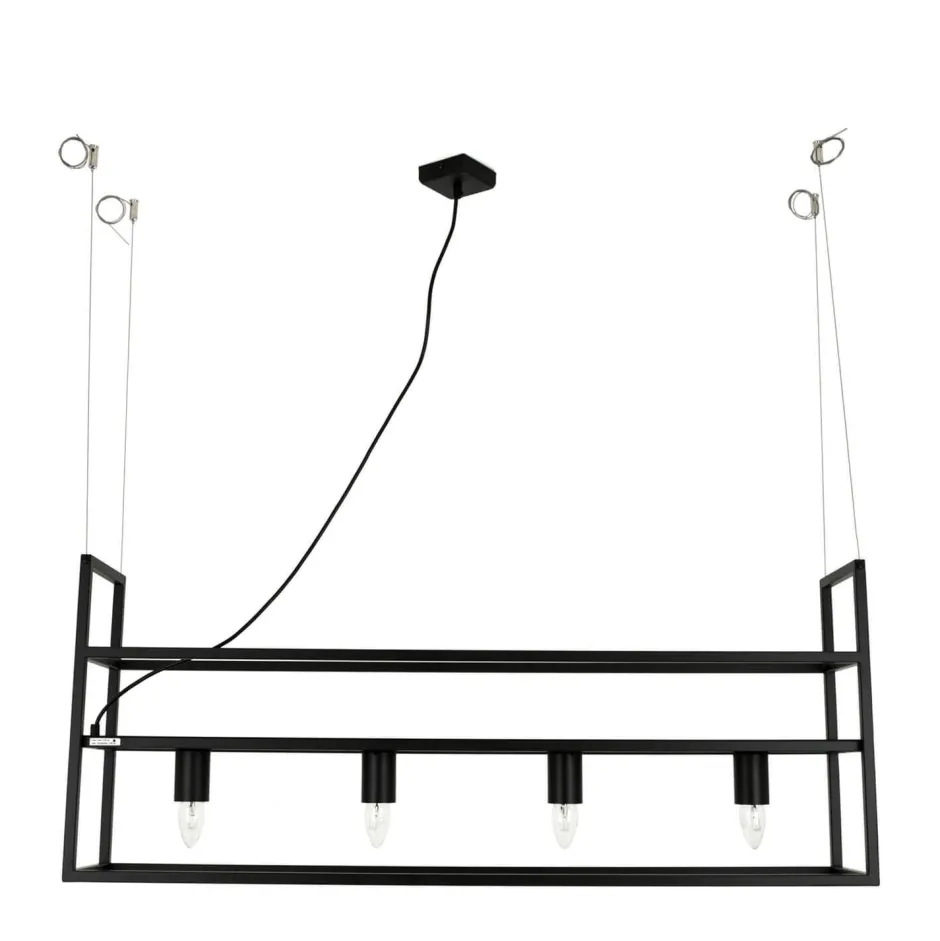 Große Pendelleuchte mit Ablage und Rahmen Schirm aus Metall