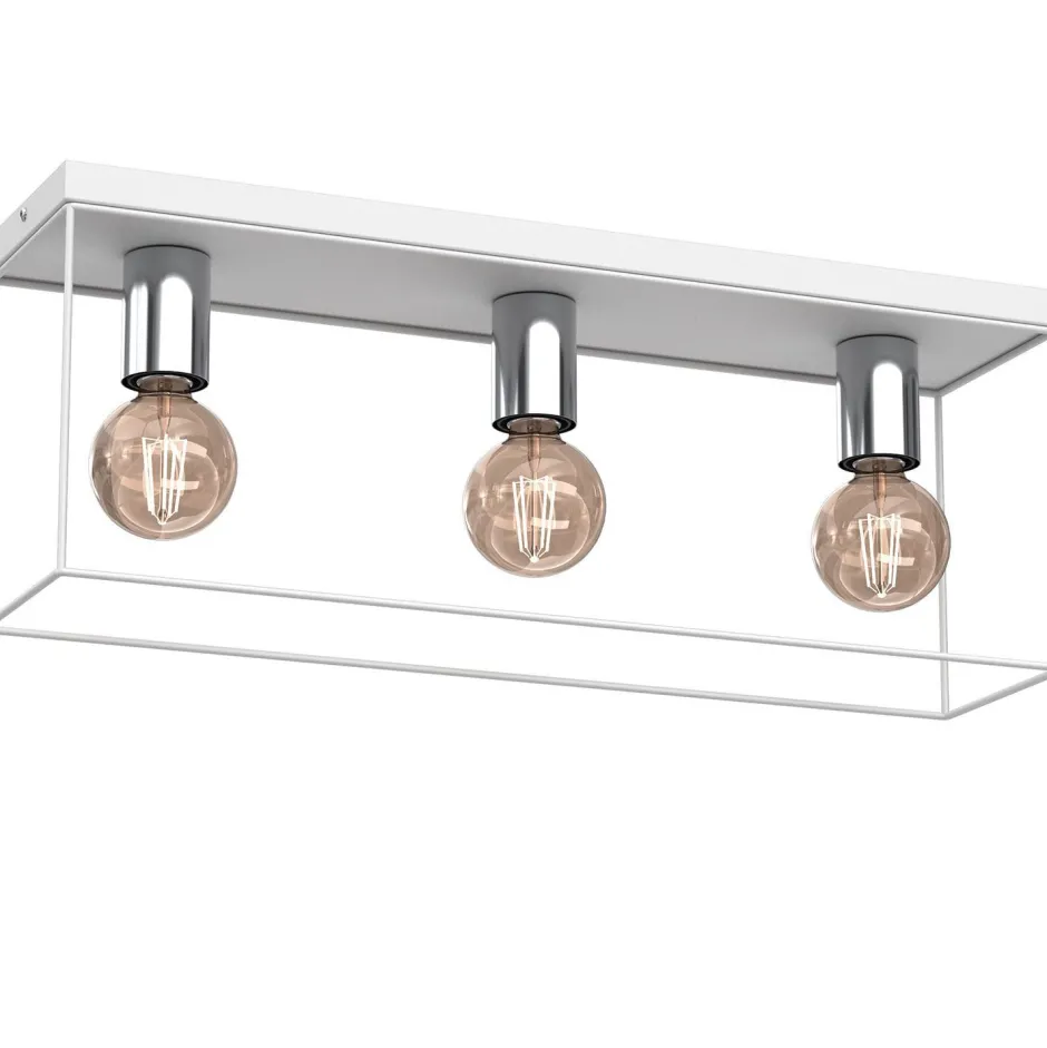 Industrie Deckenleuchte aus lackiertem Stahl in Weiß und Chrom