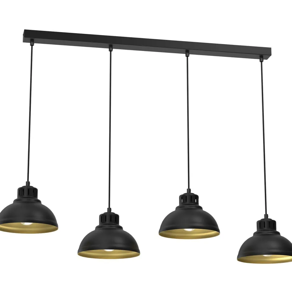 Loft Pendelleuchte aus lackiertem Stahl in Schwarz und Gold