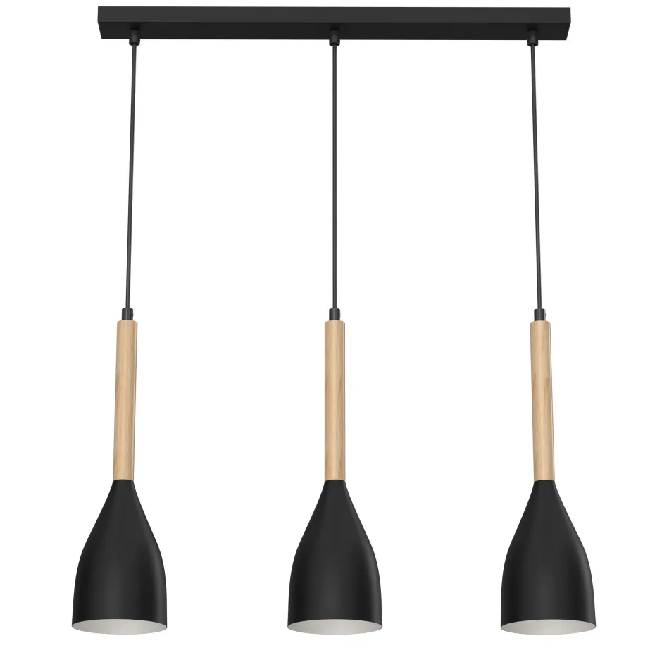 Die Kombination aus dunklem Metall und hellem Holz verleiht der Hängelampe einen dekorativen Charakter