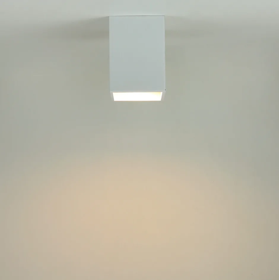 Dank der geringen Größe und der dezenten Farbe ist der Aufputz Spot ein praktisches Licht Highlight in Wohnzimmer, Flur und Treppenhaus