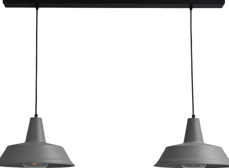 Der flache Schirm in der Trendfarbe Grau ist besonders gut für niedrige Räume geeignet