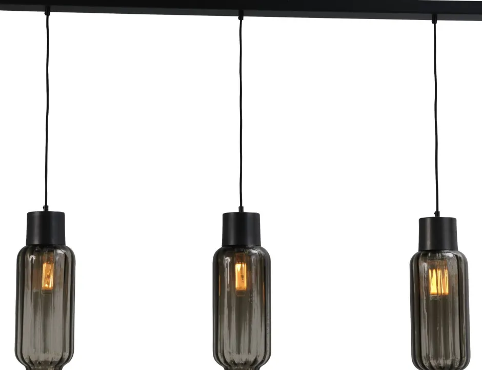 Form und Farbe verleihen den Glasschirmen einen besonderen Look, was aus der Hängelampe einen absoluten Blickfang macht