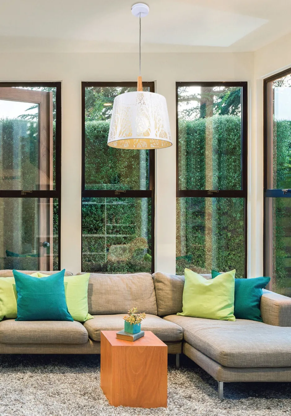 Die Hängeleuchte ist höhenverstellbar: perfekt über dem Esstisch