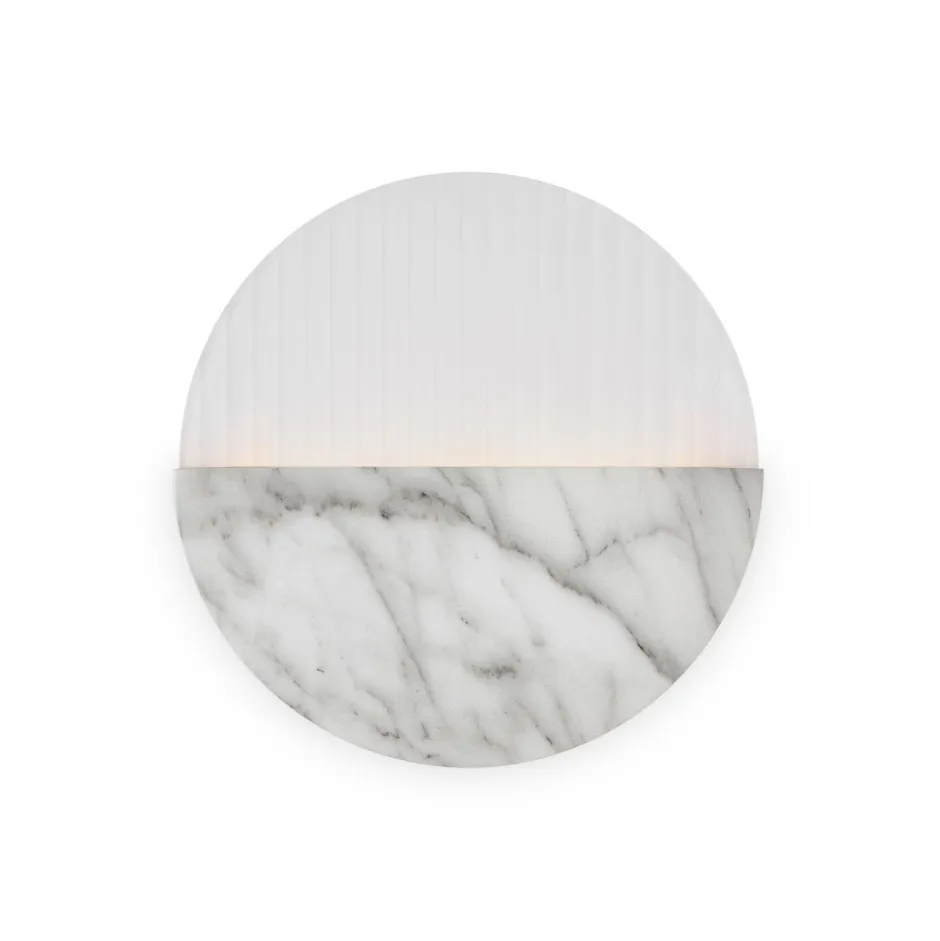 Die Oberfläche in Marmor Optik unterstreicht den besonderen Charakter der Wandleuchte uns setzt einen eleganten Akzent an jeder Wand