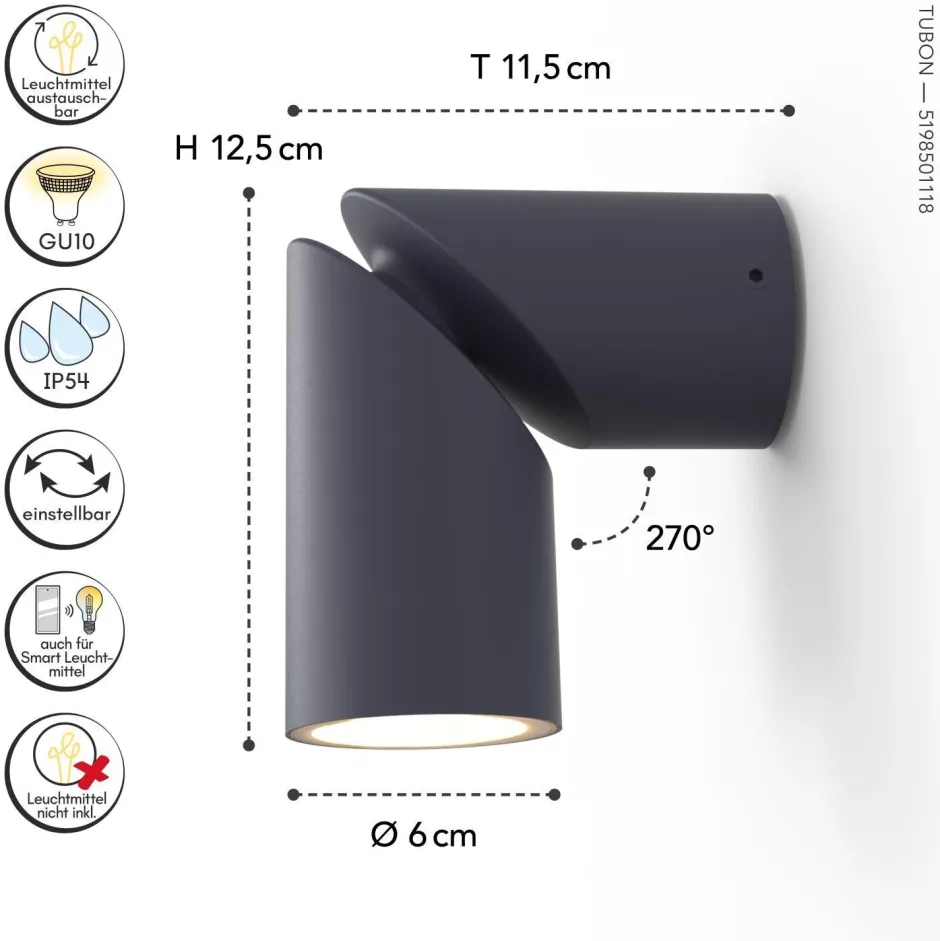 Freie Leuchtmittelwahl: Helligkeit und Lichtfarbe können mit der Wahl eines passenden GU10 Leuchtmittels individuell bestimmt werden | nicht im Lieferumfang enthalten