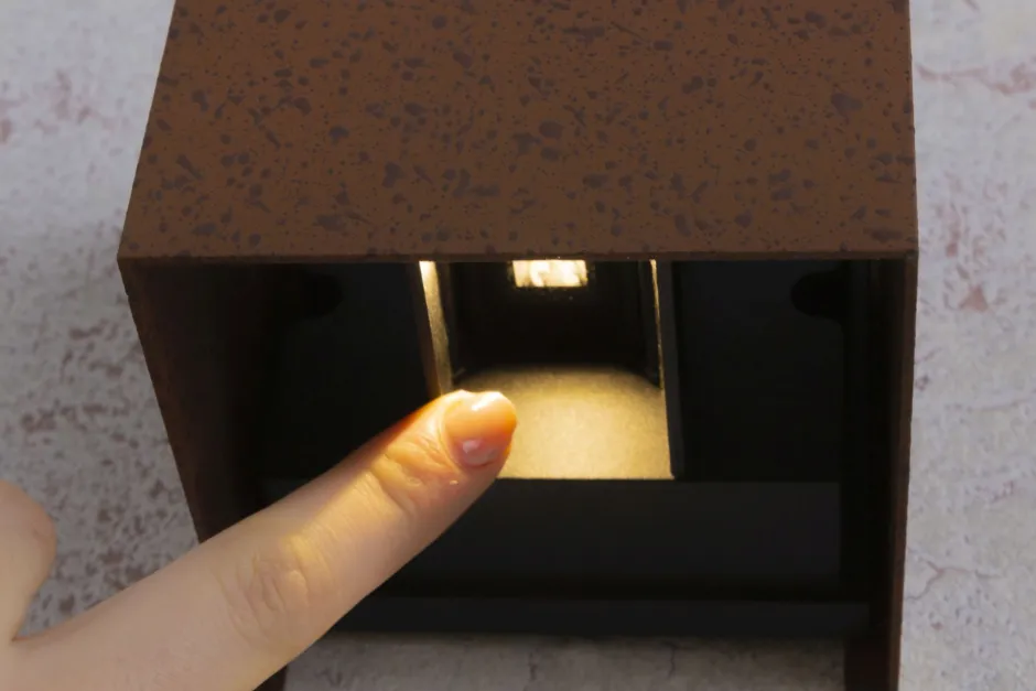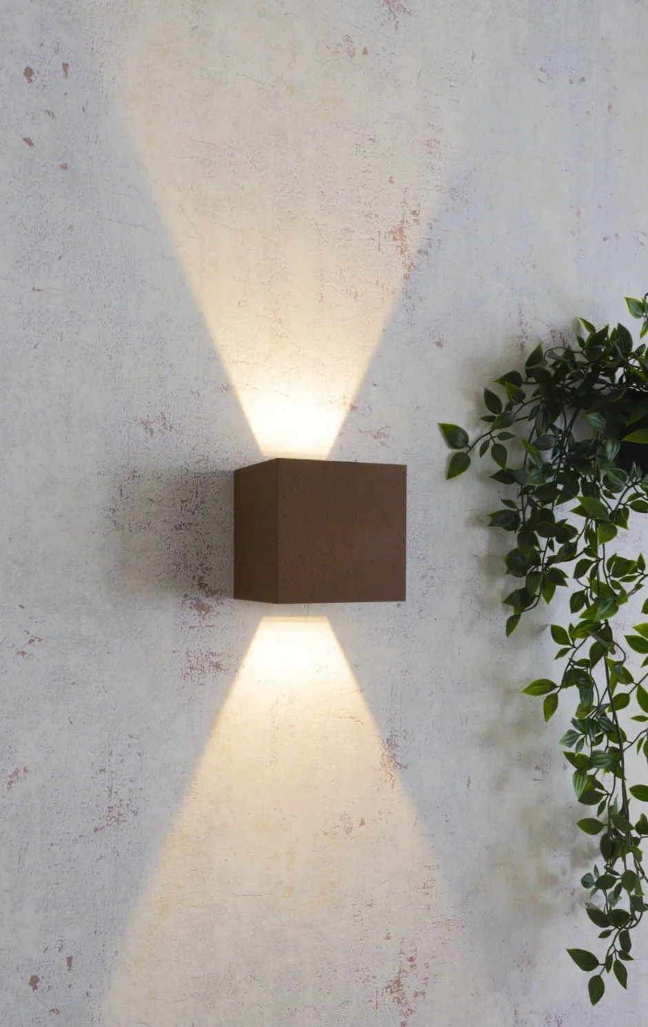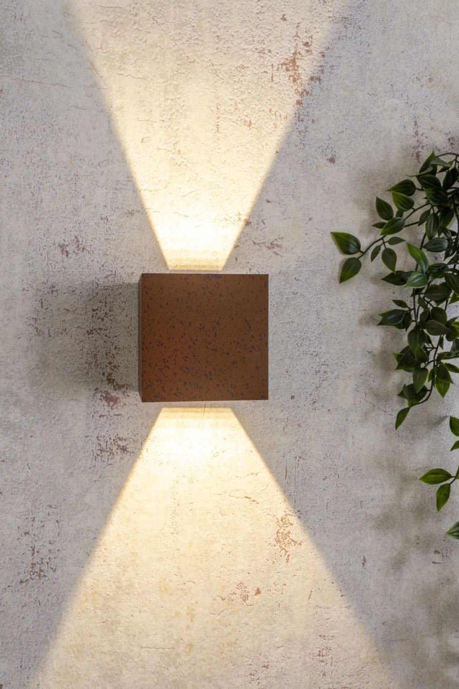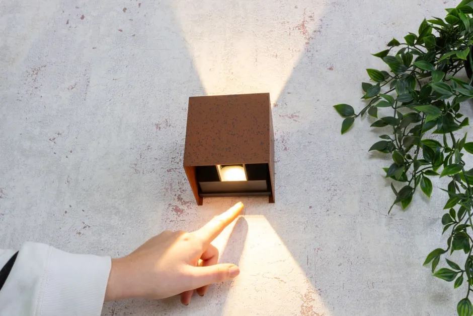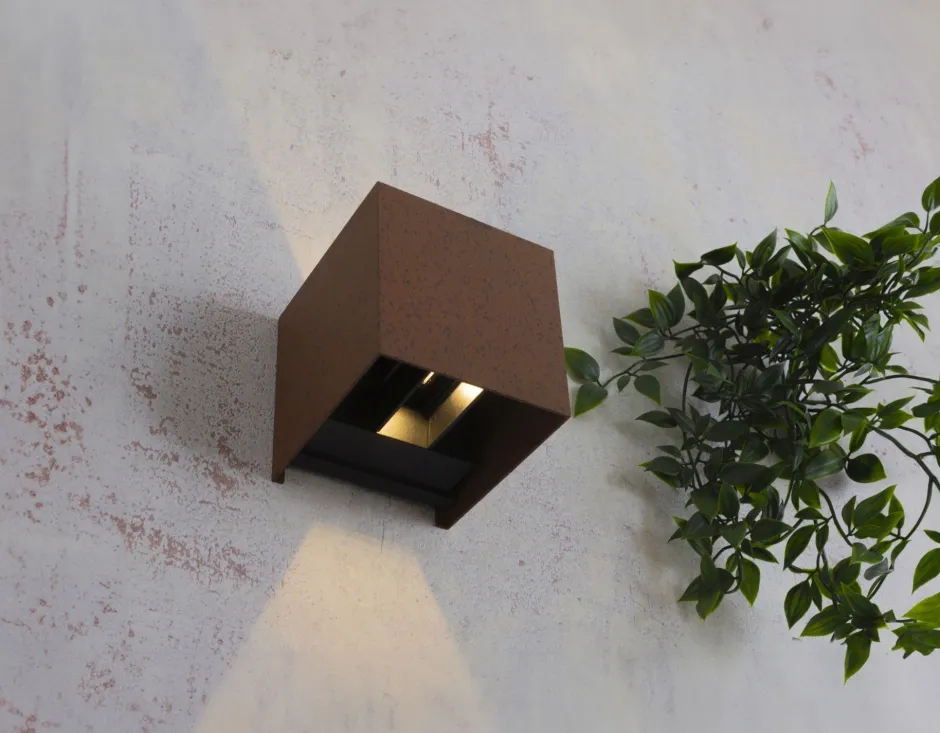 Moderne LED Außenleuchte für die Wand aus Aluminium in Rostbraun
