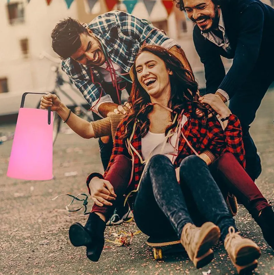 Tragbare Akku Tischleuchte mit Bluetooth Lautsprecher für Balkon, Terrasse und Garten