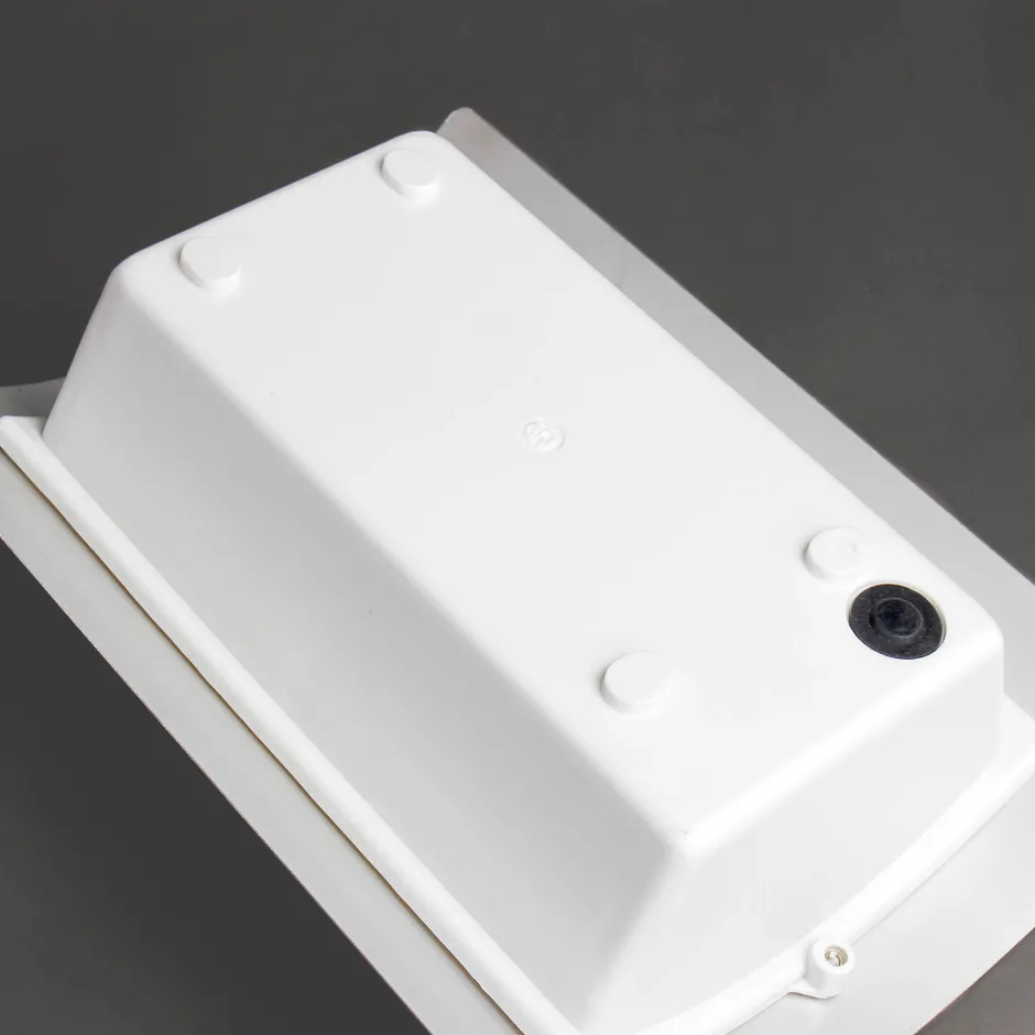 Der weiße Schirm sorgt für eine blendarme Lichtstreuung: für mehr Sicherheit auf Ihrem Grundstück, perfekt neben dem Hauseingang, Balkon, der Terrasse oder Garage