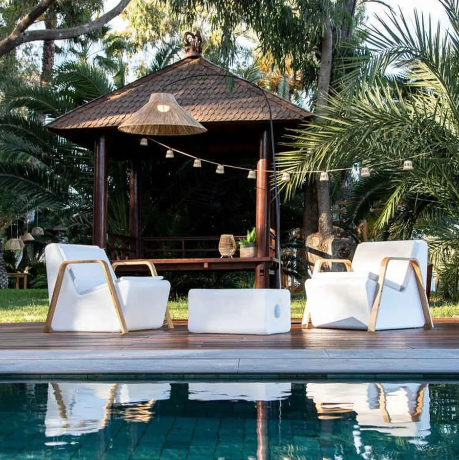 Multifunktionale Außenleuchte mit wohnlichem Lampenschirm aus geflochtenem Seegras und smartem Leuchtmittel