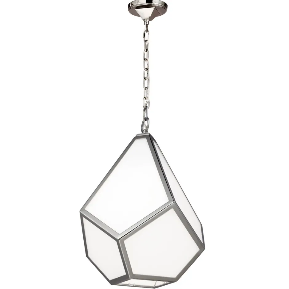 Geometrische Flächen formen die Hängelampe zu einem Abstrakten und gleichförmigen Kunstwerk