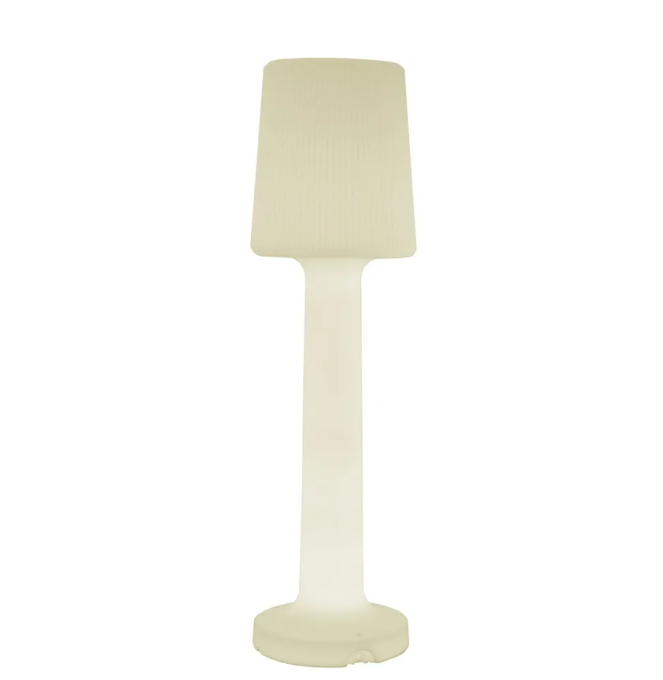 Kabellos und tragbar: Die LED Stehlampe mit geriffeltem Schirm kann ohne Montage platziert werden – für Licht genau da, wo es benötigt wird