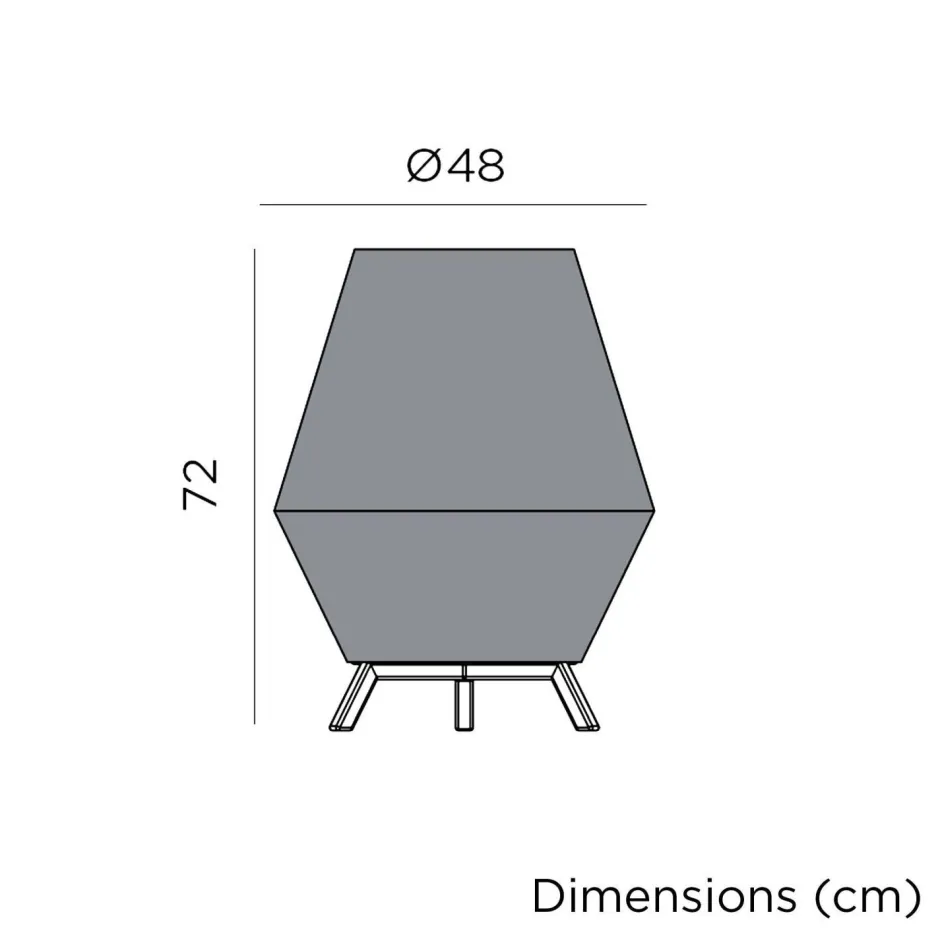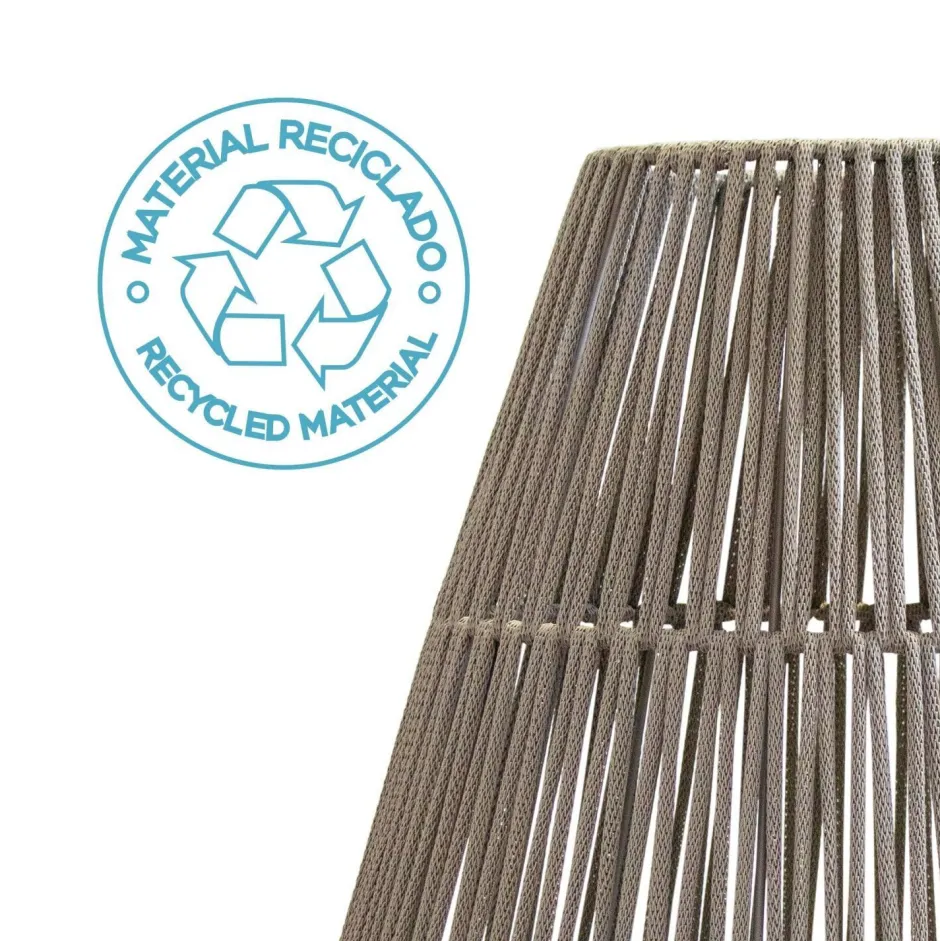 Kabellose Tischleuchte für außen mit besonderem Lampenschirm aus recycelten Kunststofffasern