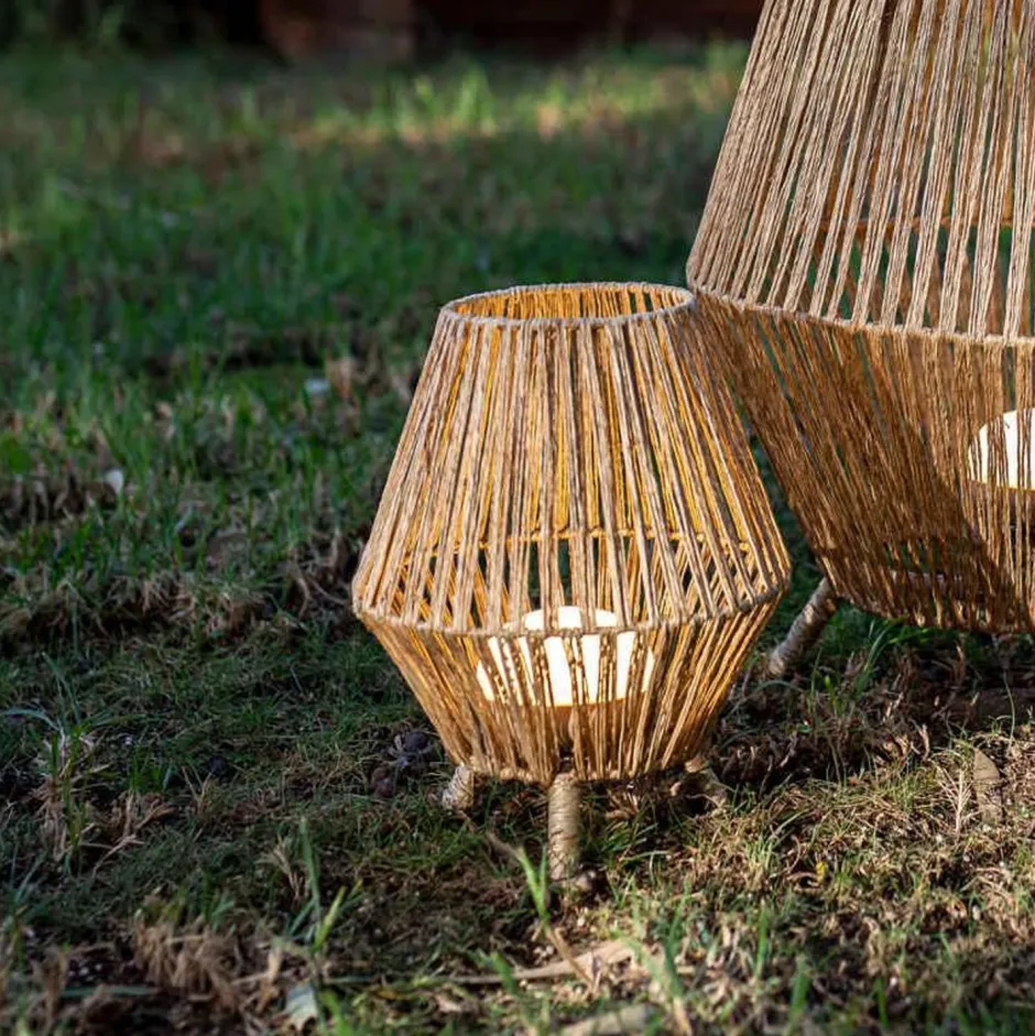 Kabellose Tischlampe für den Außenbereich mit Lampenschirm aus Seegras