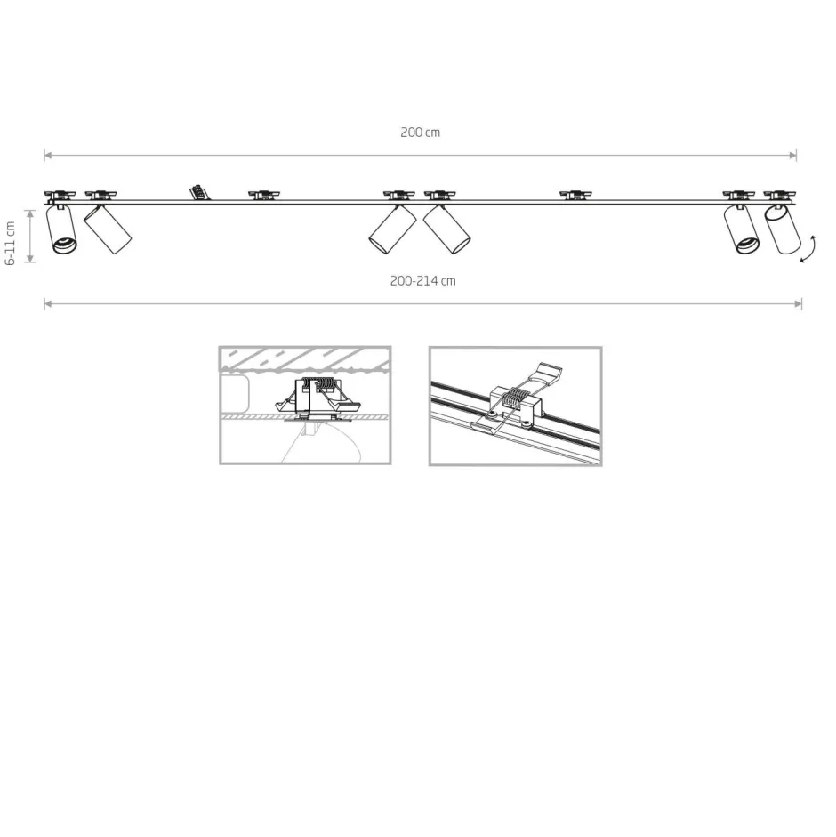 | Maße: | Breite: 55-200 mm | Höhe: 60-110 mm | Länge: 4000-4280 mm | Durchmesser Schirm: 55 mm | Höhe Schirm: 105 mm | Einbauinnenmaße: 1990×31 mm |