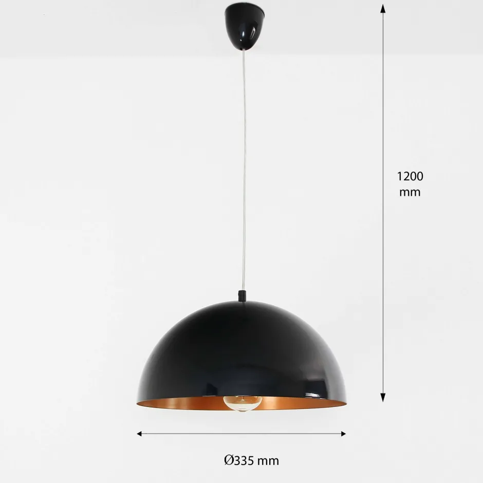 | Maße: | Breite: 335 mm | Hängetiefe: 1200 mm | Länge: 335 mm | Durchmesser: 335 mm | Durchmesser Schirm: 335 mm | Durchmesser Sockel/Wandhalterung: 75 mm |