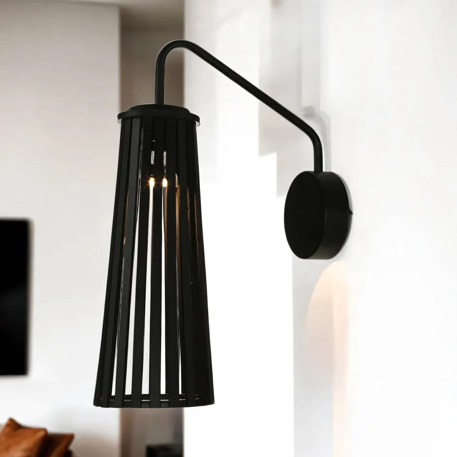 Moderne Wandlampe mit schwenkbarem Arm und kunstvollem Lampenschirm