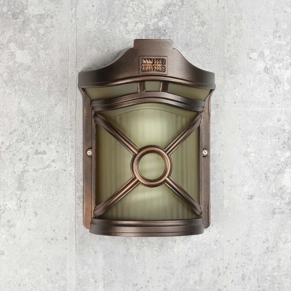 Das dezent eingefärbte Riffelglas unterstreicht das antike Design und sorgt für ein blendarmes Licht – ideal neben der Haustür im Eingangsbereich