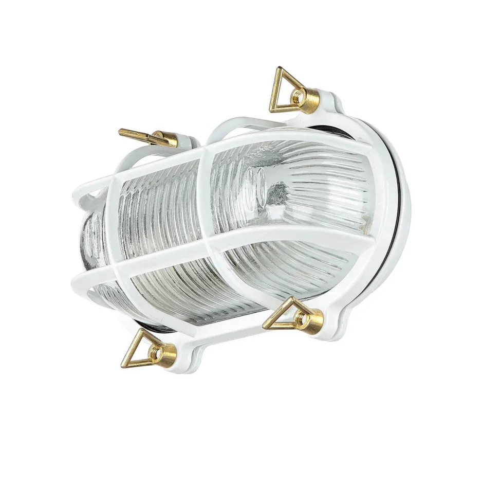 Das nautische Flair erinnert dank Riffelglas und Ziergitter an eine antike Schiffslampe: ein besonderer Blickfang auch im Eingangsbereich
