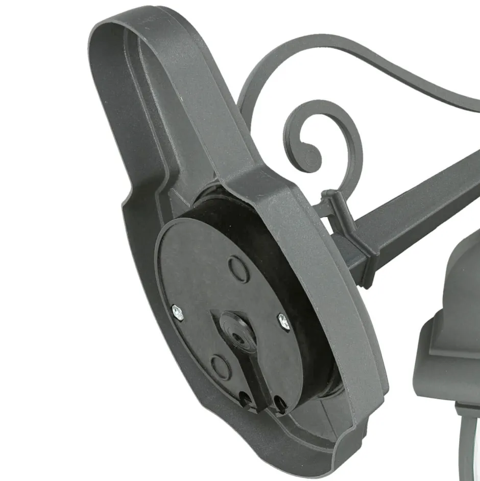Die Außenlampe setzt dank der geschwungenen Details elegante Akzente und ist ein dekoratives Highlight für Eingangsbereich, Balkon oder Terrasse