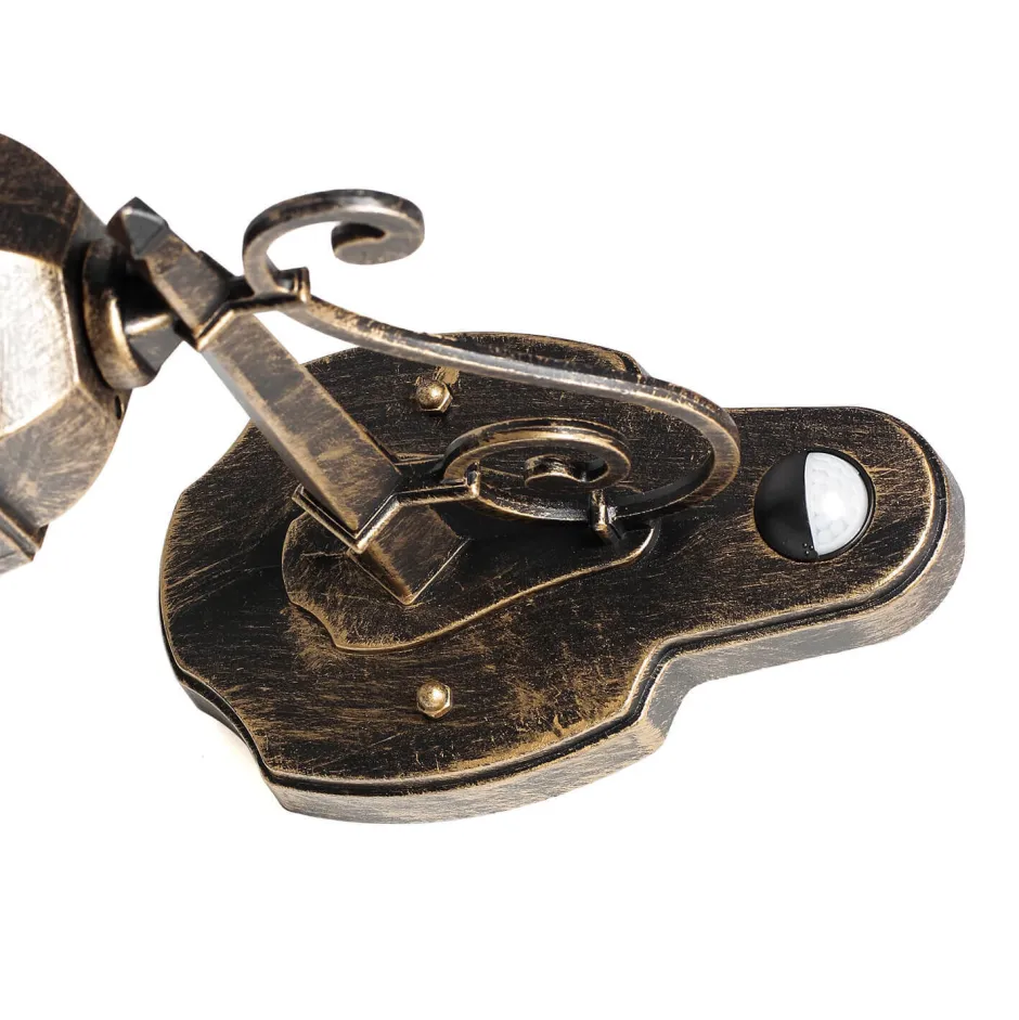 Die rustikale Wandleuchte für Außen in Schwarz Kupfer besteht aus witterungsbeständigem Aluminiumdruckguss und robustem Glas